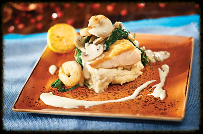 Sautéed shrimp in a garlic mojo sauce, onions,